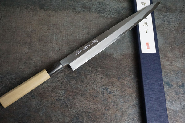 Sakai Kikumori was established in 1926. For 92 years they have devoted them selves to blade making using the most skilled craftsmen they can. We feel the fit and finish of these knives are always very high end. There is alot of attention to detail.
