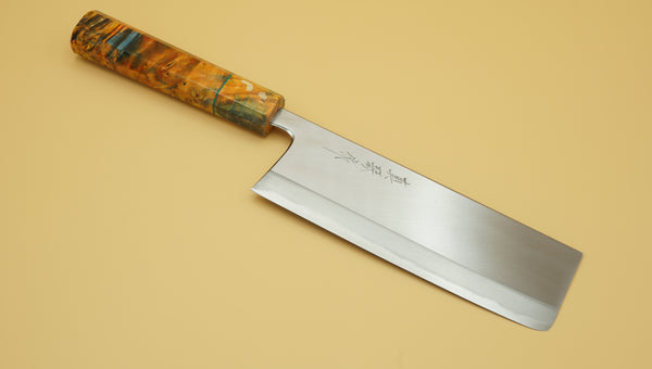Know as one of the best sharpeners in all of Japan and considered to be the best sharpener in all of Sakai. From Tosa with more then 25 years experience sharpening and finishing blades. He studied under Morihiro -San. Starting training at just 15 years old. Recently he has received a asteemed Omotenashi award for his high quality. The blades are all forged by Nakagawa-san apprentice to Kenichi Shiraki of Shiraki Hamono, known for making some of the best Honyaki and having incredible heat treat of Ginsan.