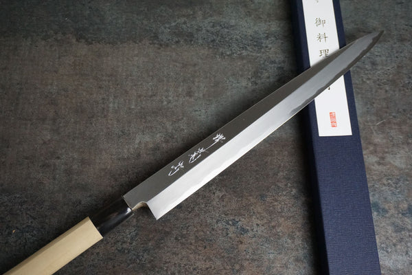 Sakai Kikumori was established in 1926. For 92 years they have devoted them selves to blade making using the most skilled craftsmen they can. We feel the fit and finish of these knives are always very high end. There is alot of attention to detail.